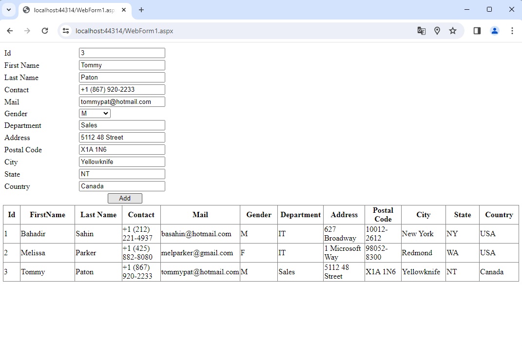 new DataColumn("Contact"), new DataColumn("Mail"), new