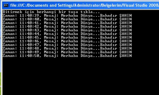 Console.WriteLine("Bitirmek için herhangi bir tuşa tıkla...");